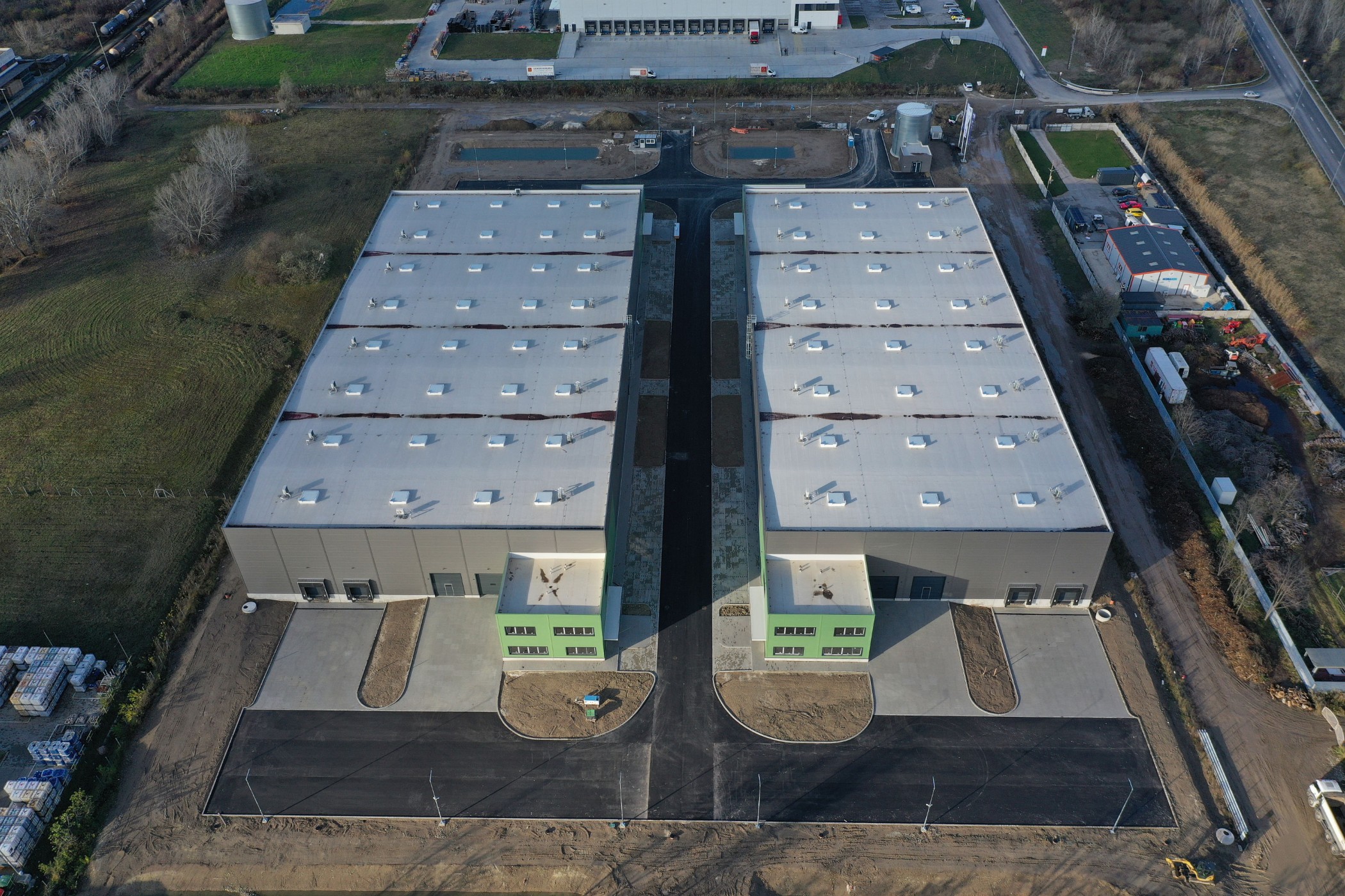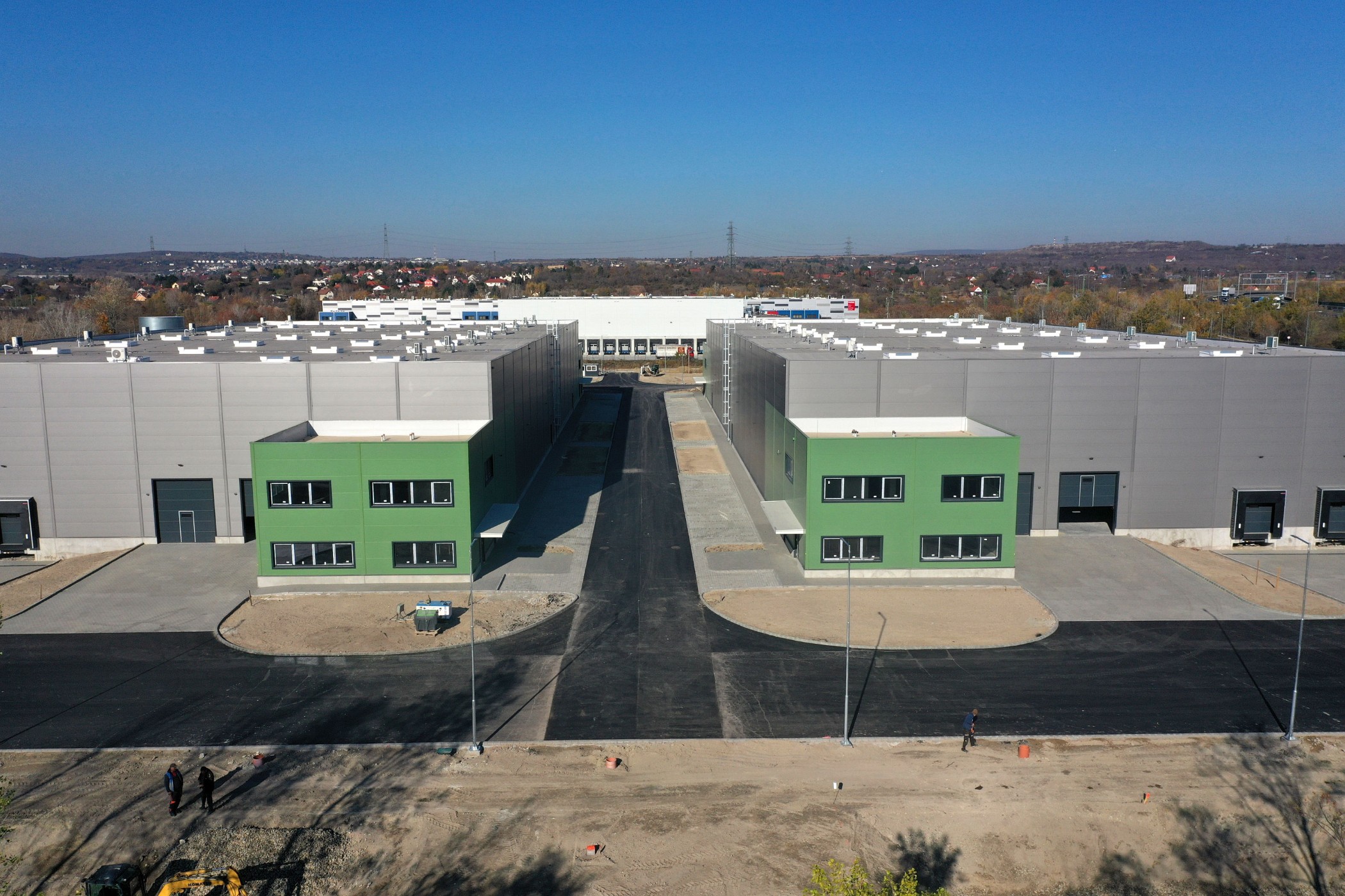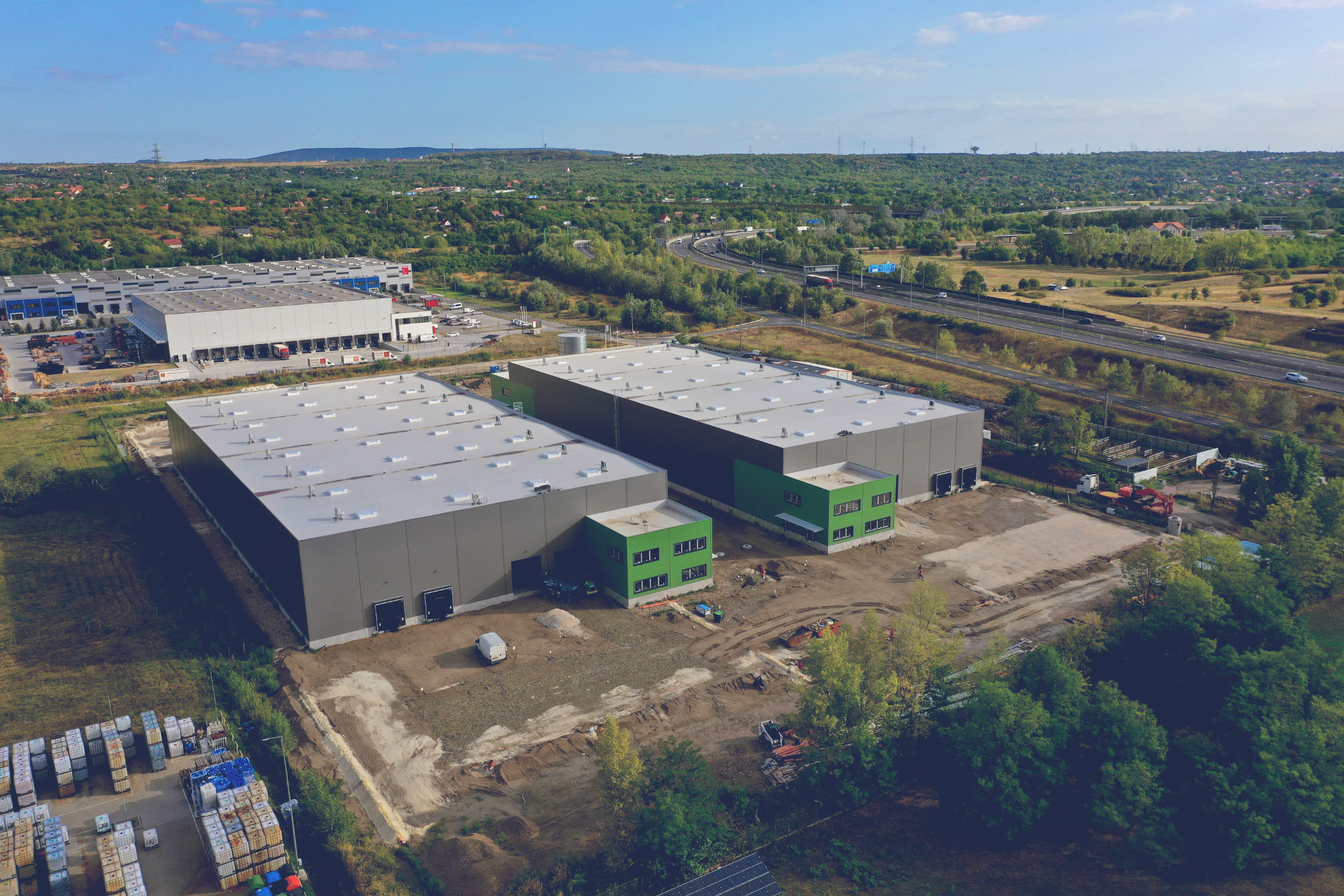 At HelloParks Budapest West megapark, a total of 381,000 sqm of industrial space is under development in Budapest’s western region, along the M1 motorway. Currently, a total of 184,000 square metres of warehouse space is available in the sustainable park, 84% of which has already been leased. All buildings have been constructed in accordance with the strictest criteria of the BREEAM New Construction sustainability standard and the requirements of the EU Taxonomy. In 2025, two buildings— together comprising 84,000 square metres were acquired by the ERSTE Open-Ended Real Estate Investment Fund.