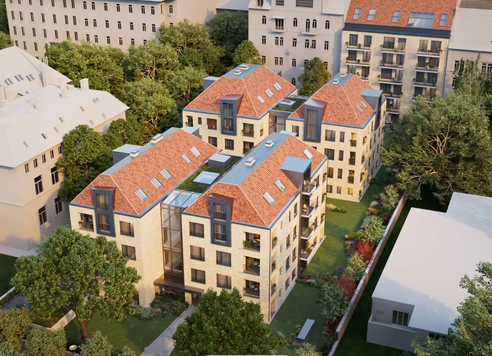 Liget Villa is a unique, premium residential development located on the historic Városligeti Fasor, comprising of 61 apartments across three buildings. Set within a green environment, yet offering a central urban location, the project follows a thoughtfully designed, low-density concept with a strong focus on liveability, high-quality materials, and a residential experience closely connected to nature. Completion is expected in 2027.